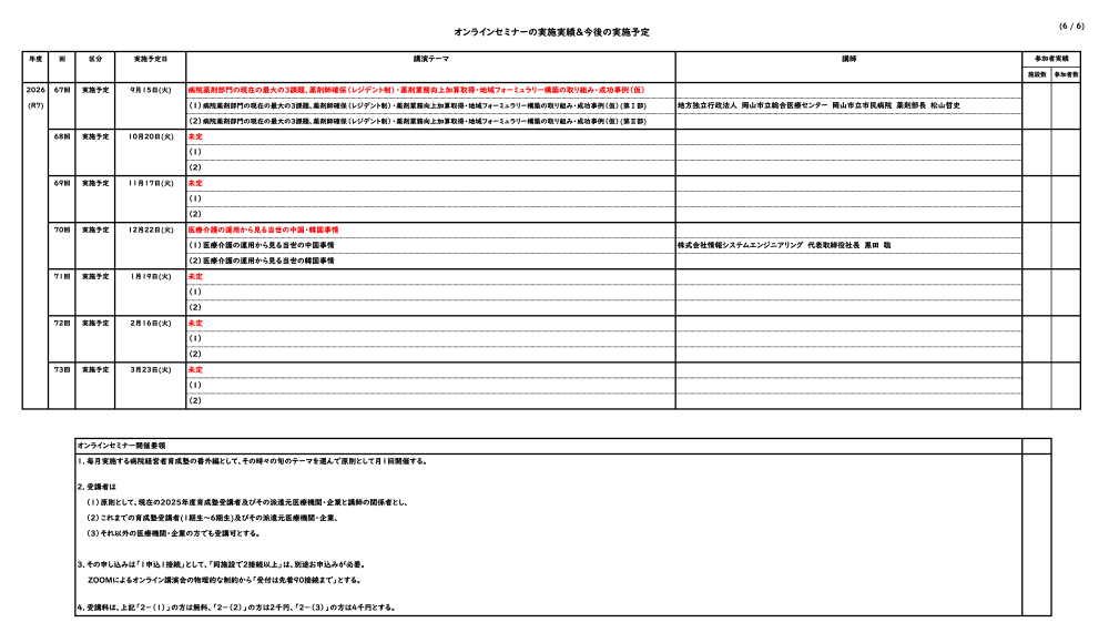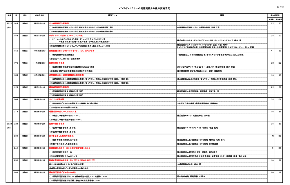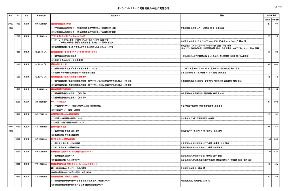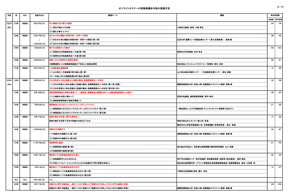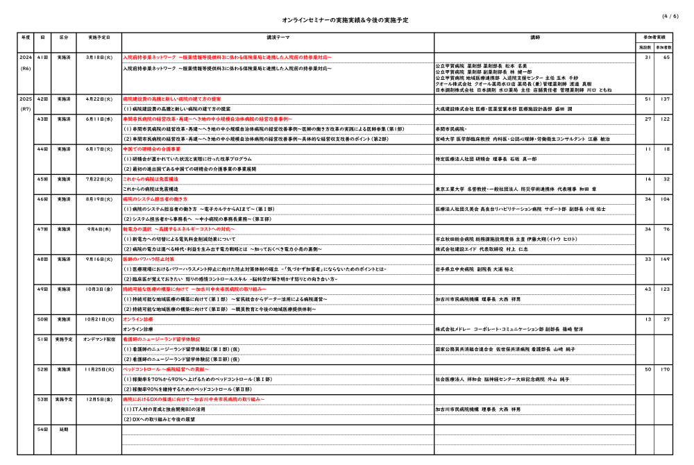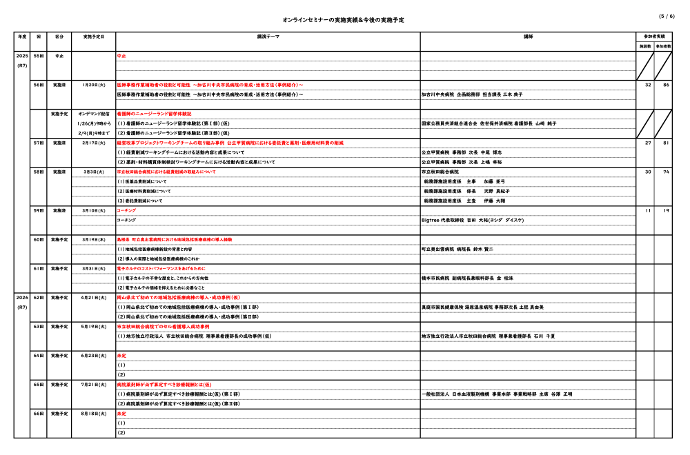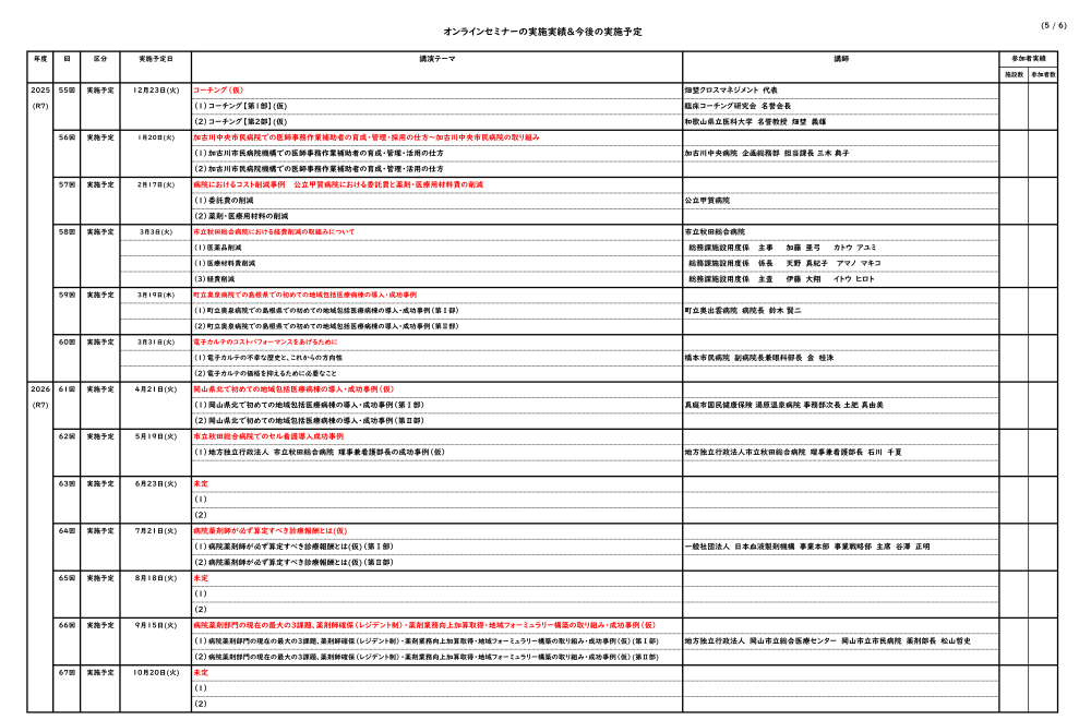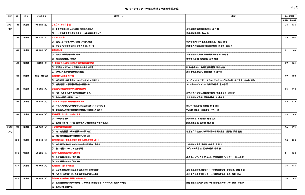 オンラインセミナーの実施実績&今後の実施予定