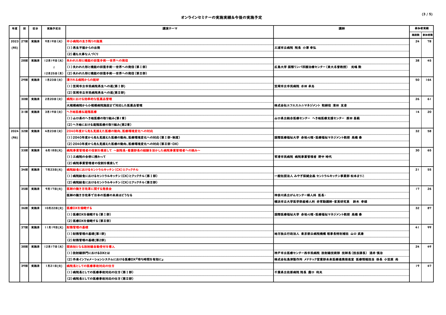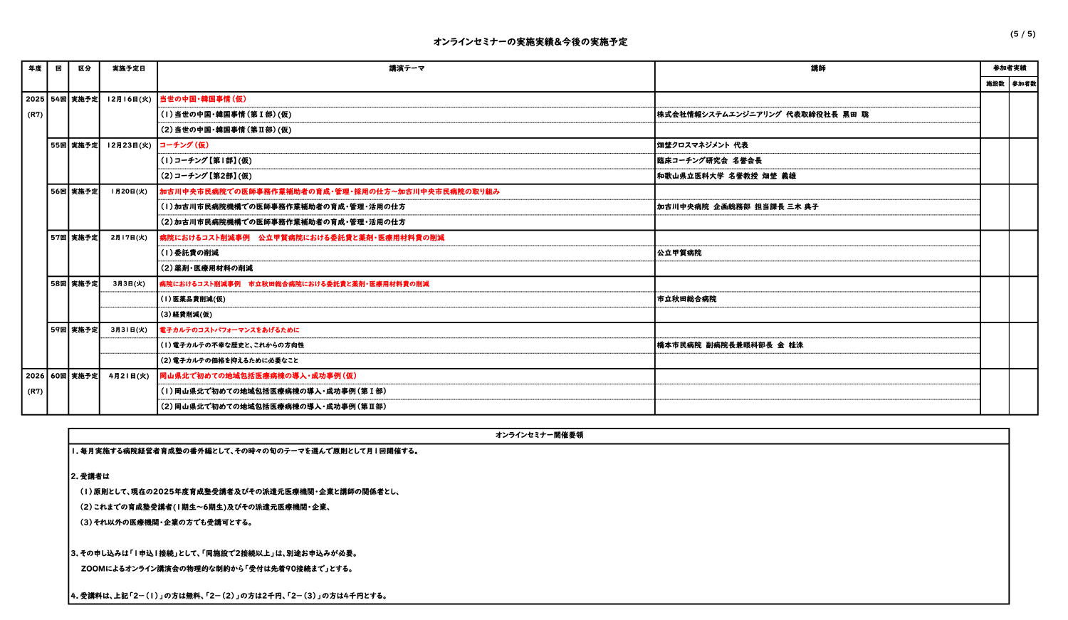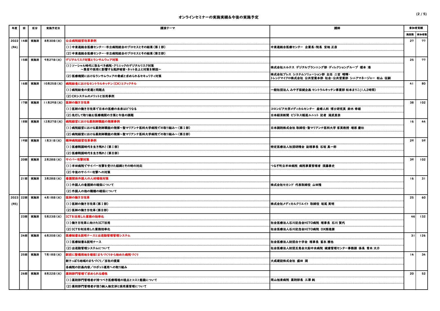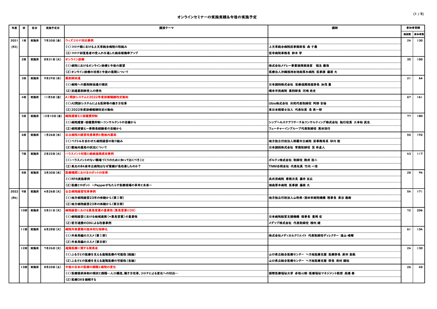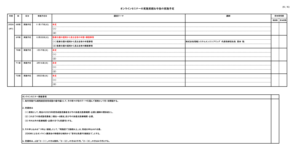オンラインセミナーの実施実績&今後の実施予定