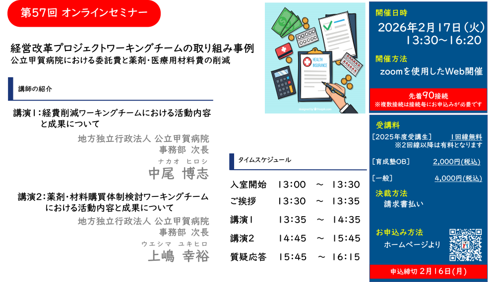 第58回「経営改革プロジェクトワーキングチームの取り組み事例 公立甲賀病院における委託費と薬剤・医療用材料費の削減」